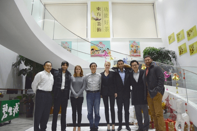 碧生源董事長(cháng)趙一弘(左四)、碧生源副總經(jīng)理溫介清(左一)與哈佛學(xué)生合影