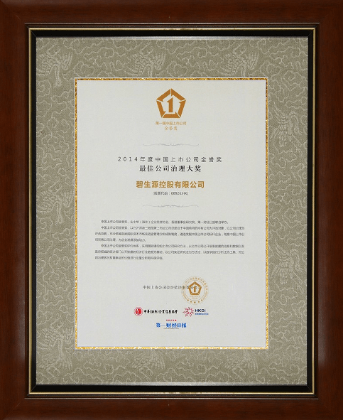 5月16日,由中華(海外)企業(yè)信譽(yù)協(xié)會(huì )、中國董事會(huì )研究院、第一財經(jīng)日報聯(lián)合舉辦的“2014上市公司企業(yè)治理論壇”在深圳舉行。碧生源控股有限公司憑借出色的企業(yè)治理水平榮膺2014年度中國上市公司金譽(yù)獎之最佳公司治理大獎。